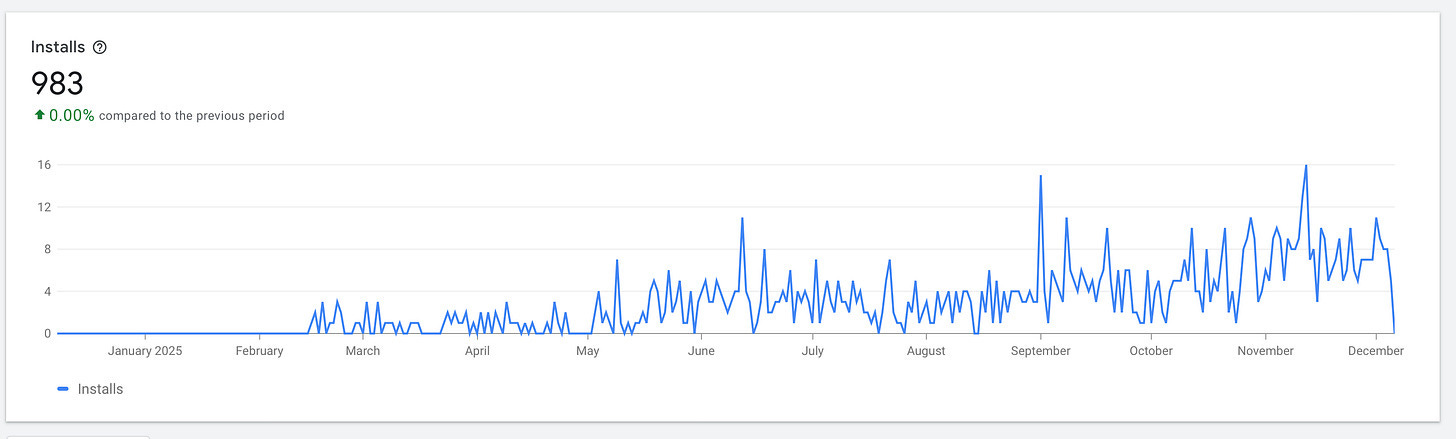 Maybe one install from a reader of my newsletter.