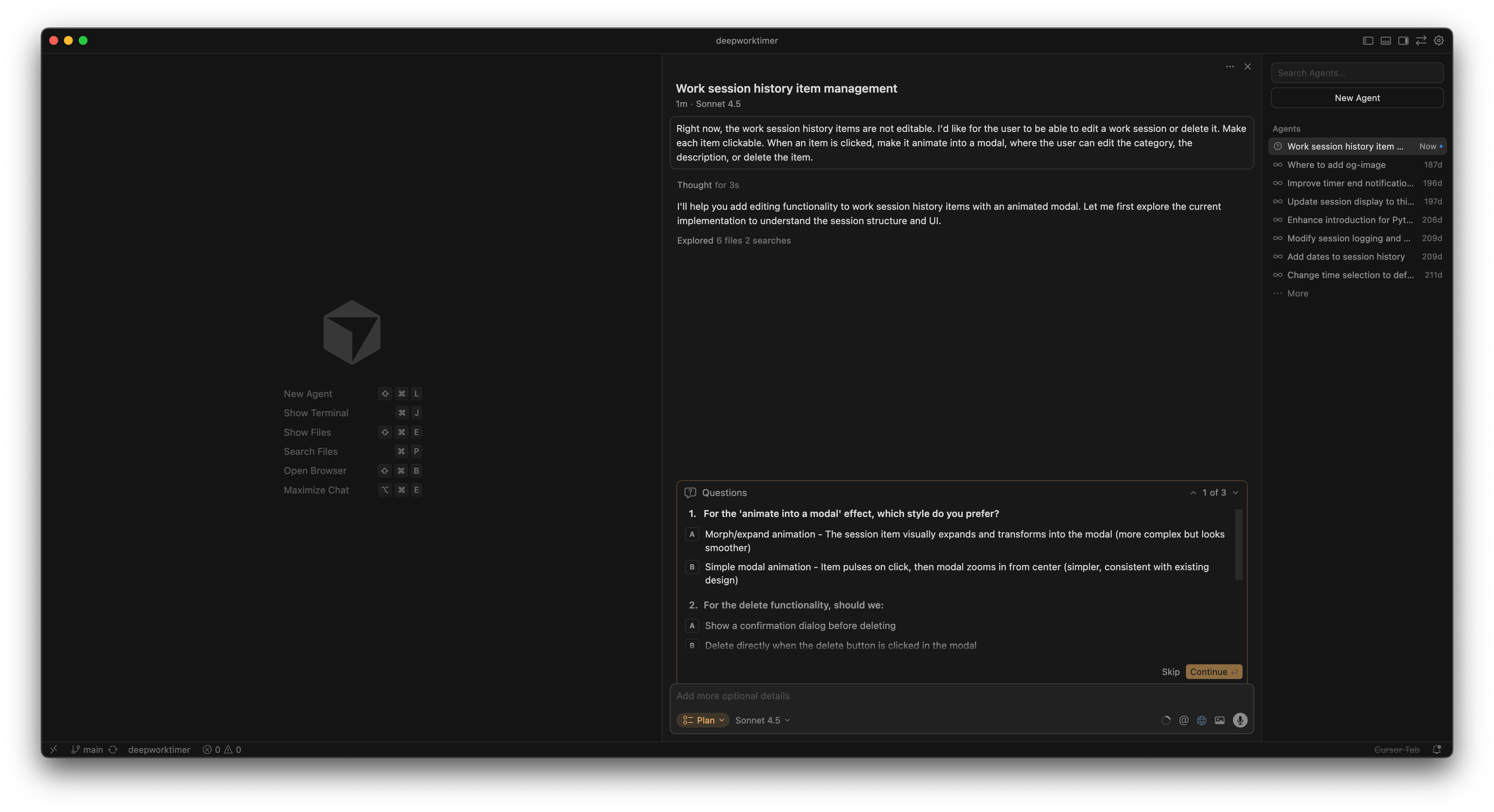 Claude Code is a great tool for building. For example, we have a Deep Work Timer application that needs a new feature.