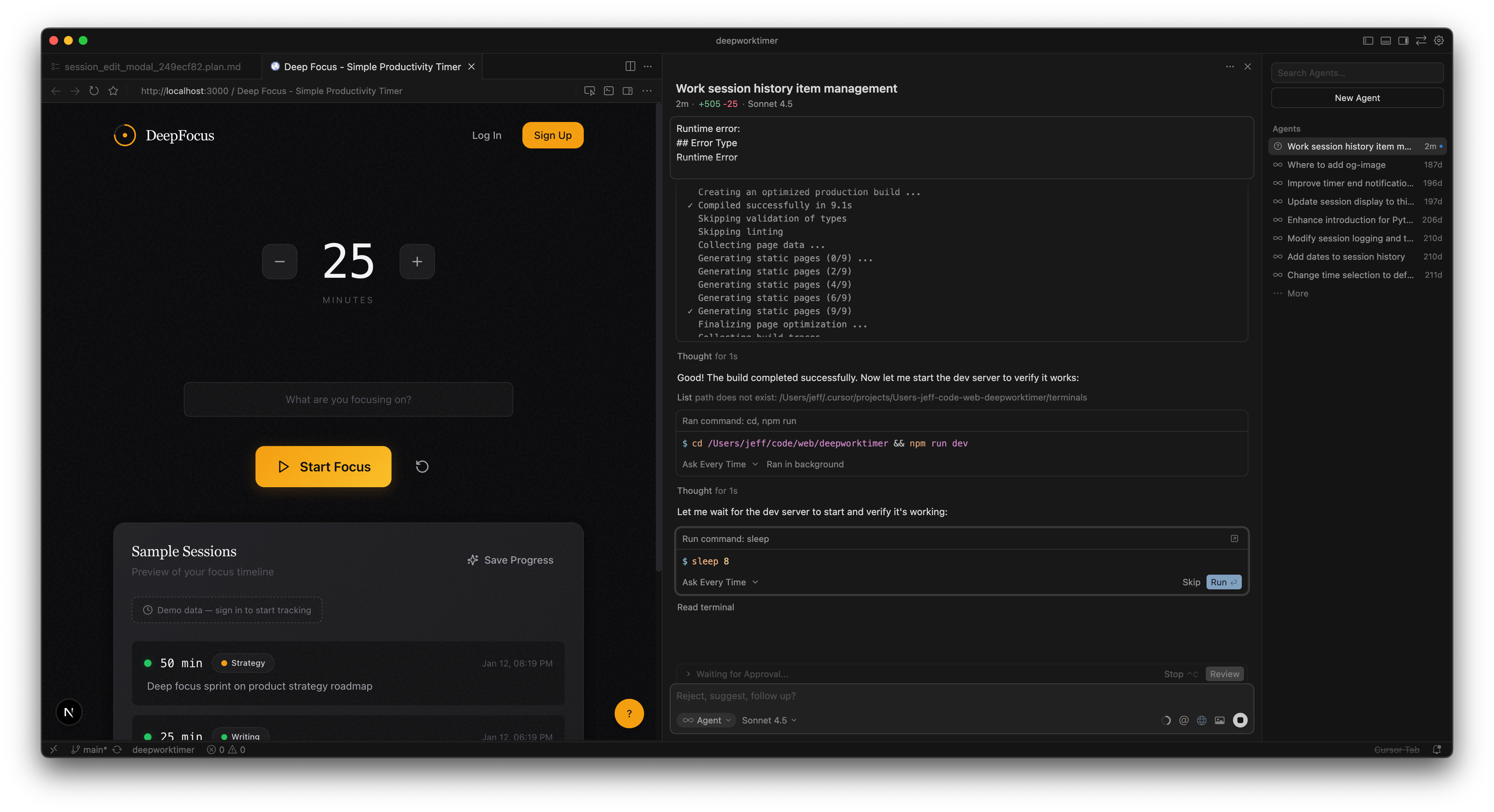 We actually mostly built the Deep Work Timer with Cursor: