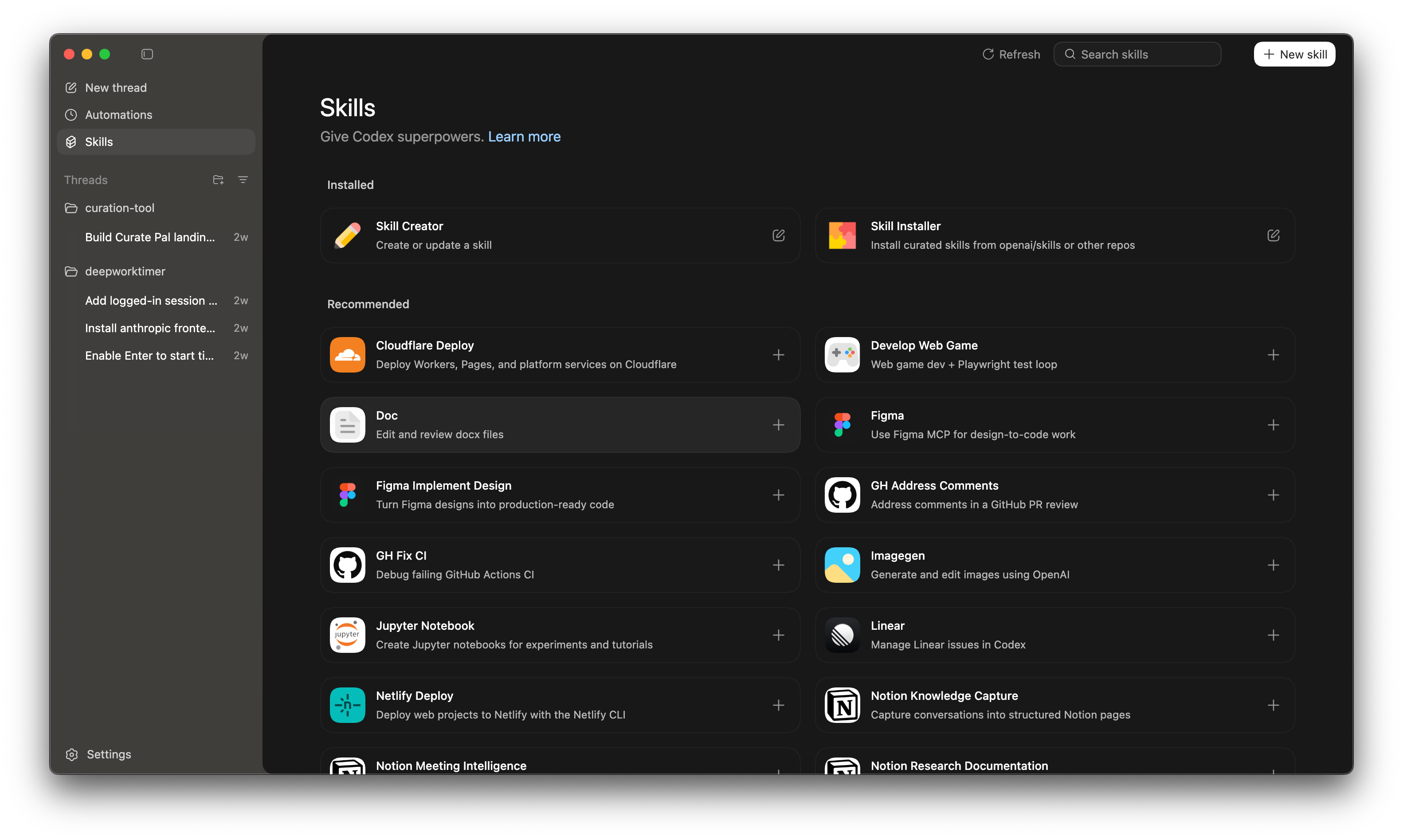 Fortunately, skills are now an open standard. That means Claude Code Skills work for Codex too! Codex has a pretty interesting skill library built-in.