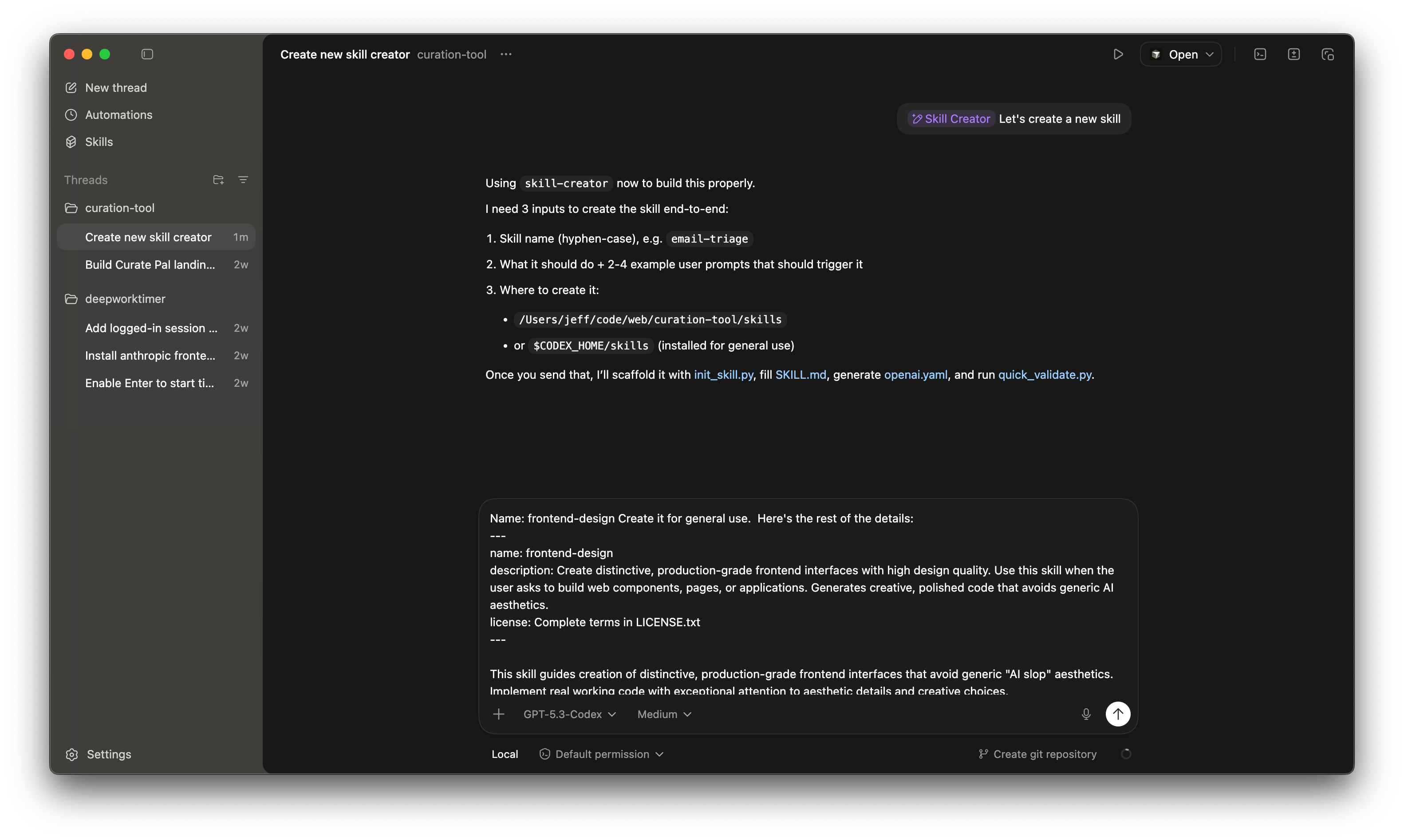 If we’re going to compare Codex to Claude Code, it’s only fair they have the same skill. You may remember a previous article where I raved over the frontend-design skill.