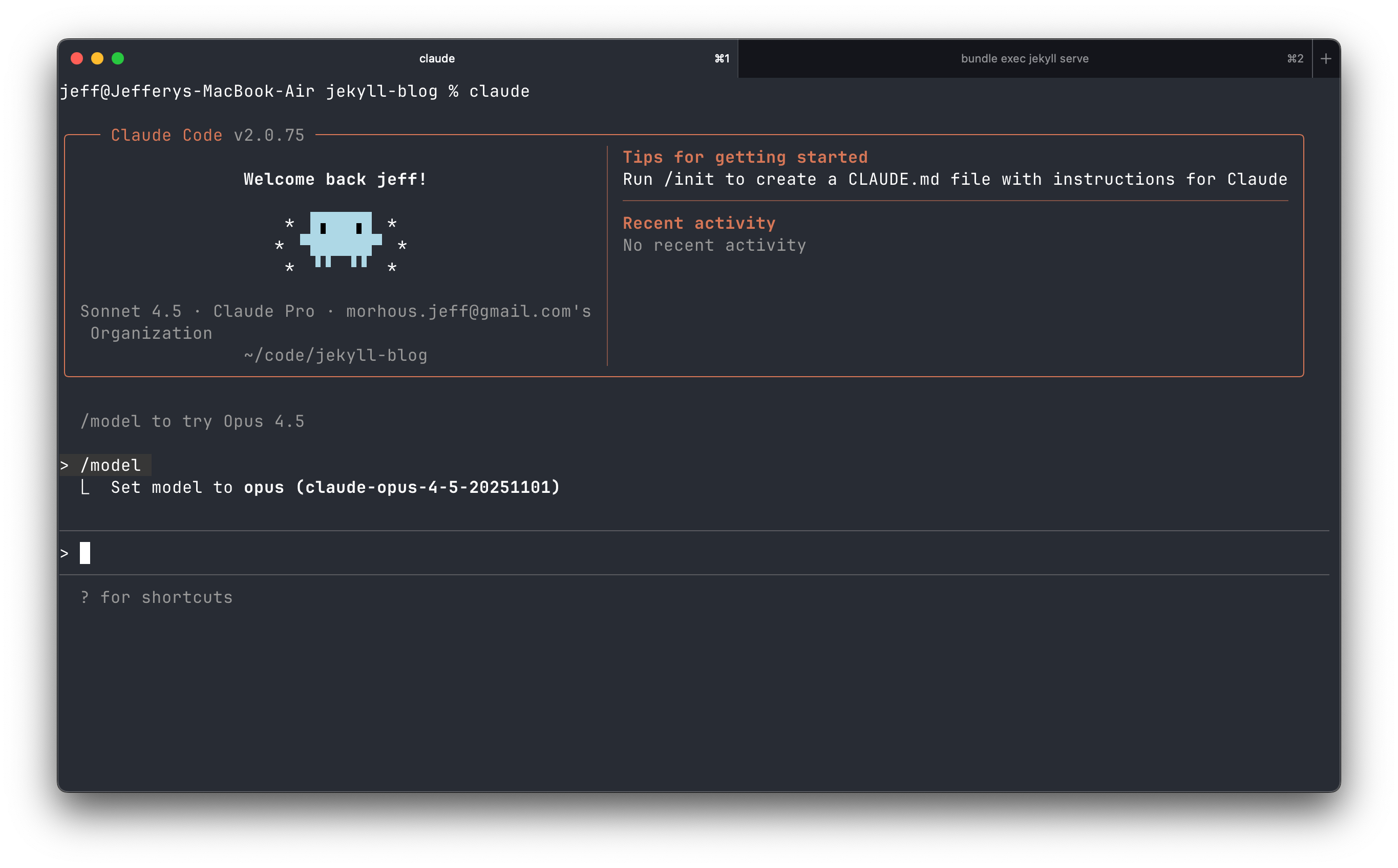 claudeThen, if you want to choose your model (I’m choosing Claude Opus 4.5), type: